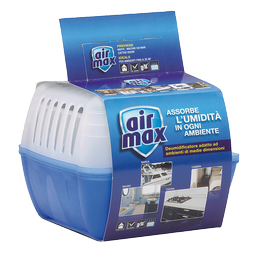 I prodotti Air Max® contribuiscono immediatamente ad instaurare nell’abitazione un buon equilibrio di umidità, contrastando la formazione di umidità in cantine, armadi dei contatori, garage, roulotte ecc., ma anche in locali domestici come camere da letto, cucine, soggiorni e bagni. Vi proponiamo il Kit Assorbiumidità Air Max® e le Ricariche Sali Air Max®.